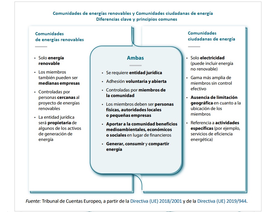 El Tribunal de Cuentas recuerda que las comunidades energéticas, "como beneficiarias de medidas en materia de energías renovables", pueden optar a varios fondos de la UE, como el Fondo Europeo de Desarrollo Regional y el Mecanismo de Recuperación y Resiliencia (MRR). "En particular, el MRR contiene medidas con un coste estimado de 5 200 millones de euros para apoyar a las comunidades de energía directa o indirectamente (por ejemplo, a través de medidas en materia de energías renovables), que se desembolsarán a más tardar en diciembre de 2026". Las comunidades de energía -concreta el informe- pueden utilizar estos fondos para instalar paneles solares o construir molinos de viento, por ejemplo.